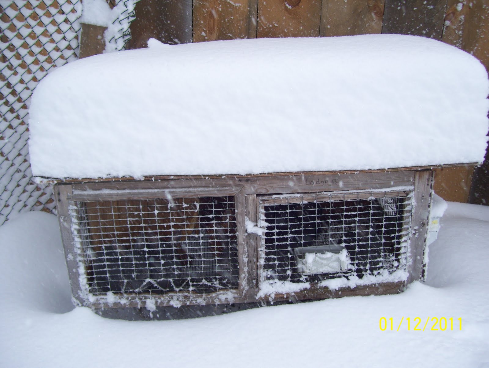 Now, to follow up from last year's summary: I started 2010 with 46 rabbits. While we were up over 100 a few times with litters this summer and fall, we presently have (runs to count) 86-ish. Yikes. I started with 42 hens, added some, subtracted some, and have just over 60 at present. The barn being finished, complete with ferocious (if under 5 pounds!) cats, next project will be to add a good fence so we can get our dairy goats and beef cow. The gardens did poorly again, though some of that was problems sowing at appropriate times due to graduate school, followed by horrendous heat, and then by being really, really sick during harvest time. I did manage to can some tomatoes, though. I built a new bed, 15x16', divided into three 5x16' sections. The rear-most bed is asparagus; the middle bed was potatoes (which did ok, since I didn't irrigate), and the bed next to the driveway was soup beans, which I never quite got out to harvest. The blueberry bushes did have fruit, but the birds got it. The peach tree and one of the apple trees in the front yard both had fruit which mysteriously vanished just as it was almost ripe. I blame the squirrels. I loathe squirrels. The bulbs I planted two summers ago were supplemented by more bulbs this spring from the Smith College Bulb Show, and the bed was really quite lovely. I also planted zinnias and marigolds, which joined the perennial coneflowers and black-eyed Susans and peonies. The overseeding of the front lawn turned out pretty well, even during August and September when it was so, so dry. I did experiment with tractoring rabbits; growth rate was slower, but acceptable. My intention is to pursue this program for the next few years, keeping back the largest doe from each litter and the largest buck from each group of litters in each breed, in the hope of selecting for good growth on a mixed grass-and-pellet diet. Feed prices won't be coming down, I don't think, so more sustainable is good. The dogs, who were old, lame, and deaf last year are older, still lame, and more deaf this year. Sheba is 14 1/2, Decker is 14, and Lily is a lovely 6 - still energetic but a bit less wild.